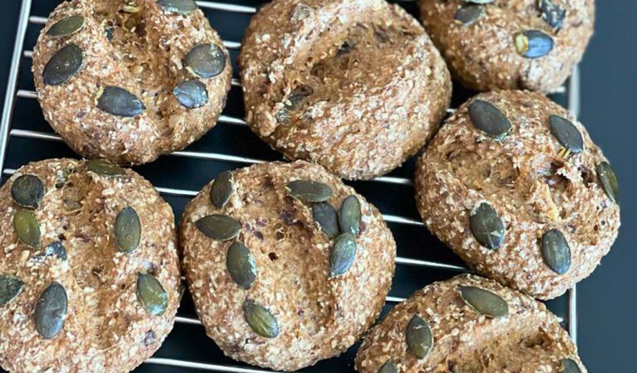 - Nach Belieben mit Haferkleie und Kürbiskernen bestreuen. Leicht die Brötchen einschneiden.